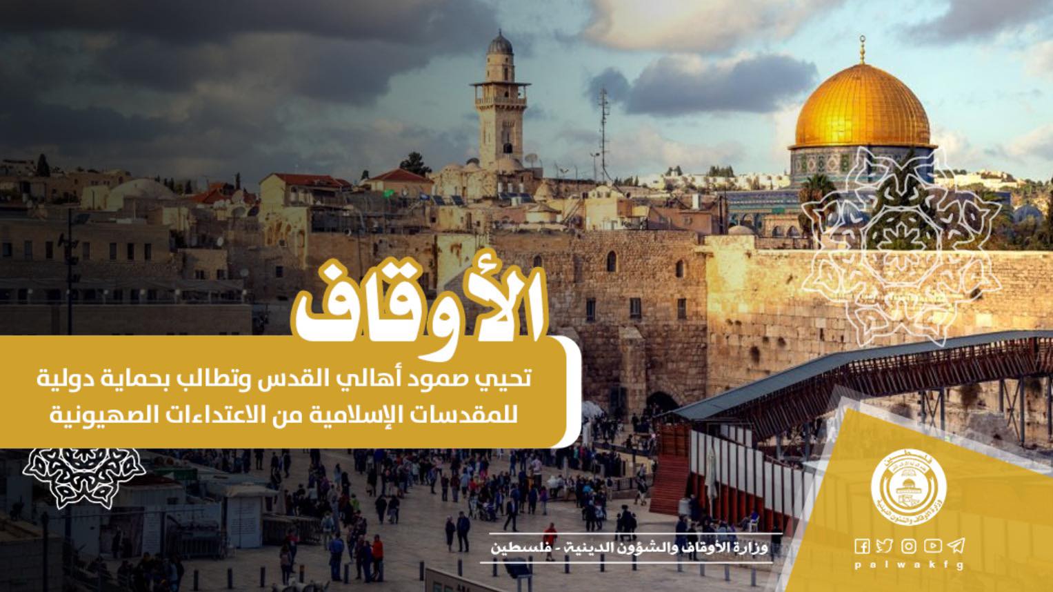 الأوقاف تحيي صمود أهالي القدس وتطالب بحماية دولية للمقدسات الإسلامية من الاعتداءات الصهيونية