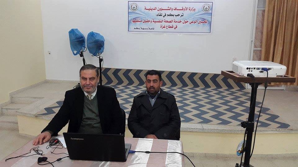 عقد الإدارة العامة للوعظ والإرشاد بالتعاون مع قسم الوعظ والارشاد بمديرية أوقاف محافظة خانيونس يوم تثقيفي بعنوان تحسين الوعي حول خدمة الصحة النفسية وحقوق متلقيها فى قطاع غزة ، حيث استهدف اللقاء نخبة من الخطباء وأئمة المساجد فى مديريتي خان يونس ورفح وكان ضيف اللقاء أخصائي الصحة النفسية د .سمير زقوت.