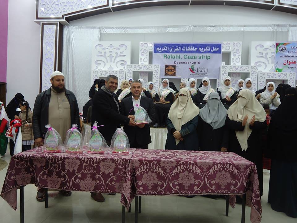 نظم قسم التحفيظ في الإدارة العامة للعمل النسائي حفلا تكريمياً للطالبات الحافظات برعاية كريمة من مؤسسة السراء ومؤسسة الحلوان في صالة الأميرة في محافظة رفح