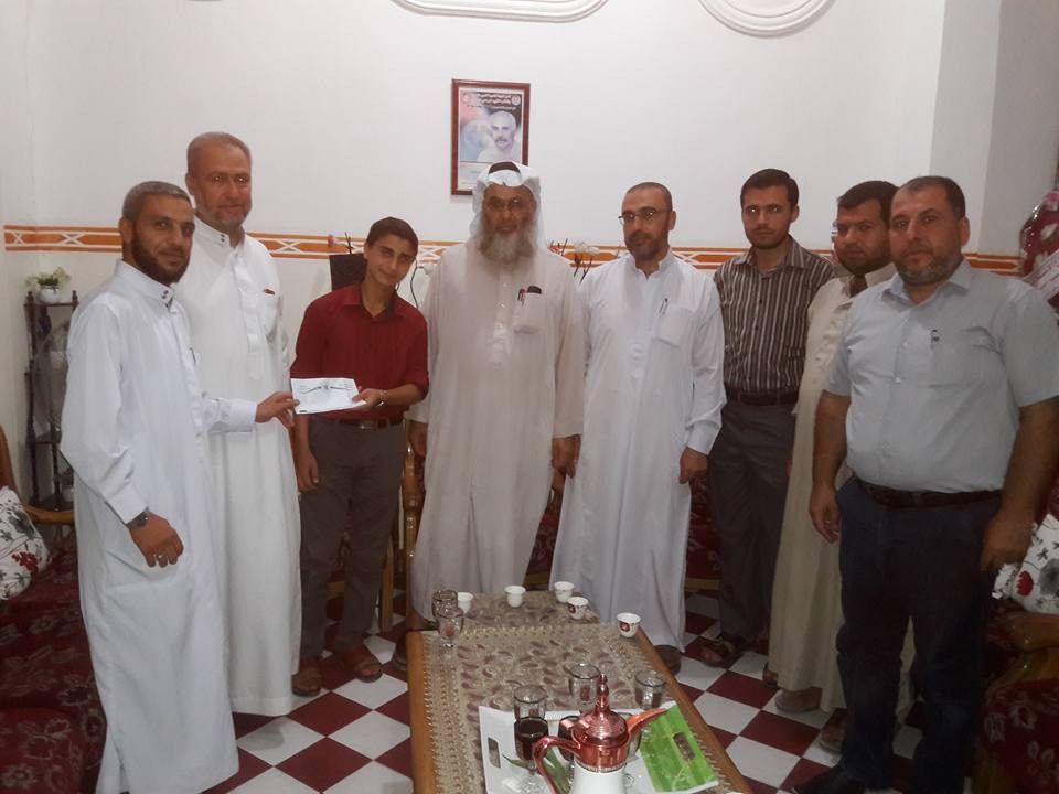 هذا وجاء تقديم المكافأة خلال زيارة رسمية لمنزل الطالب شارك فيها مدير عام التحفيظ أ. عبد الهادي الأغا ومدير أوقاف خان يونس أ. محمد الغلبان ورئيس قسم التحفيظ الشيخ عبد الباسط الأسطل وعدد من رؤساء الأقسام والشعب في التحفيظ.