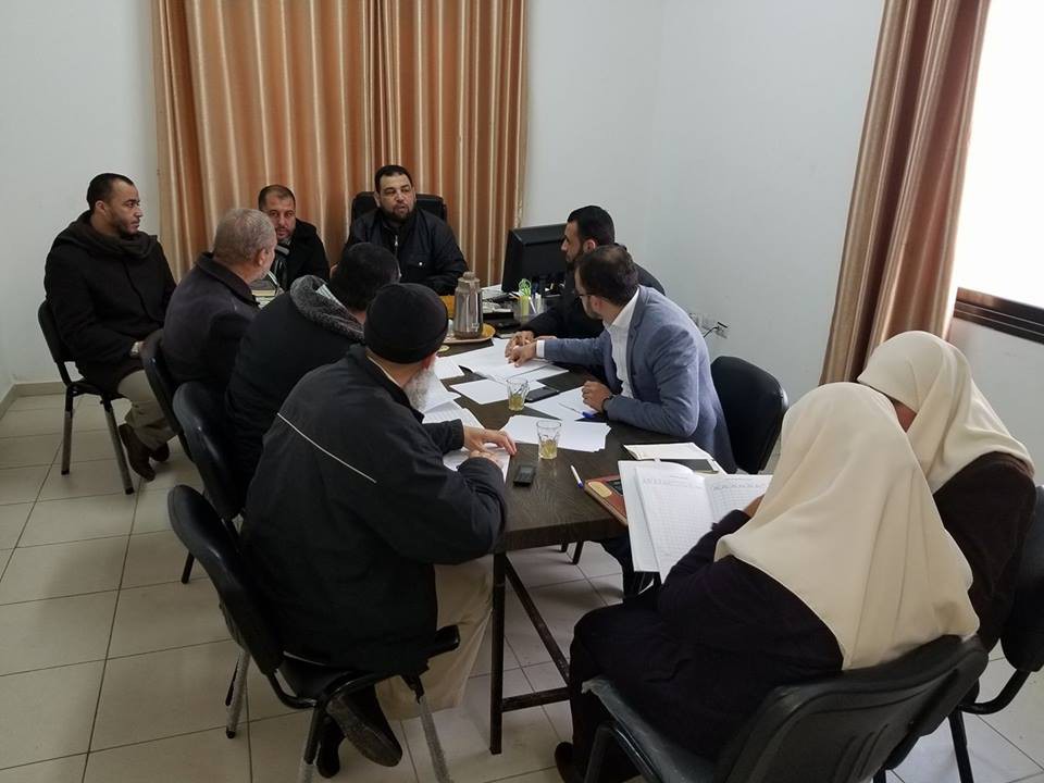 عقدت دائرة التحفيظ بوزارة الأوقاف والشئون الدينية اجتماعها الدورى ، بحضور مدير دائرة التحفيظ الأستاذ عماد الدجنى ورئيس قسم مراكز التحفيظ ورئيس شعبة المراكز بالإدارة العامة ورئيس شعبة التحفيظ بالعمل النسائي وذلك لمناقشة السجل المستخدم لدى حلقات التحفيظ والترتيبات المتعلقة بالمخيم المغلق والتشاور بما يخص حلقات التربية القرآنية.