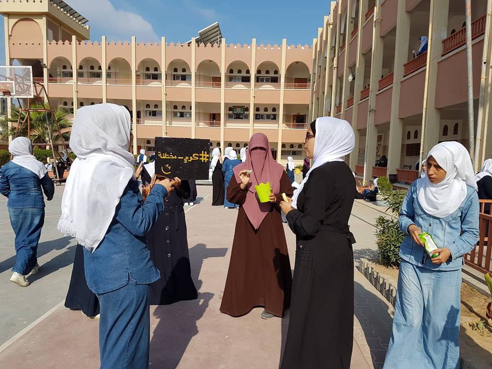 نظم قسم الوعظ والإرشاد بالعمل النسائي بغزة لقاء خاص بالحجاب للطالبات غير المحجبات في مدرسة بلقيس اليمن الثانوية للبنات ضمن حملة كوني مختلفة، نفذته الواعظة عبير أبو حطب، بمشاركة المدربة لطيفة حمدان.