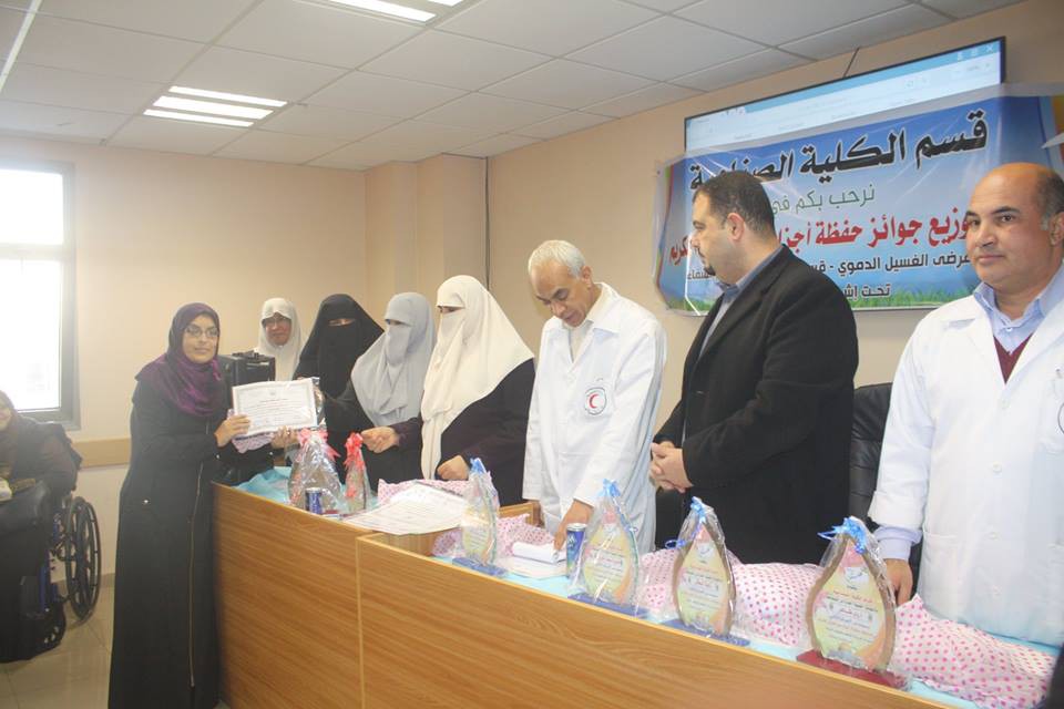 نظم قسم التحفيظ في الإدارة العامة للعمل النسائي حفل تكريمي خاص بالنساء مرضى الكلى الحافظات لأجزاء من القرآن الكريم في مستشفى الشفاء الطبي بحضور المدير العام أ. كفاح الرملي ورئيس القسم أ. مها الشوبكي ورئيس قسم الشعبة أ. أمل اشتيوي ومشرفة التحفيظ حنان حمودة والمحفظة سلمى مشتهى وعدد من الأطباء والمختصين من القسم ولفيف من ذوي الحافظات.