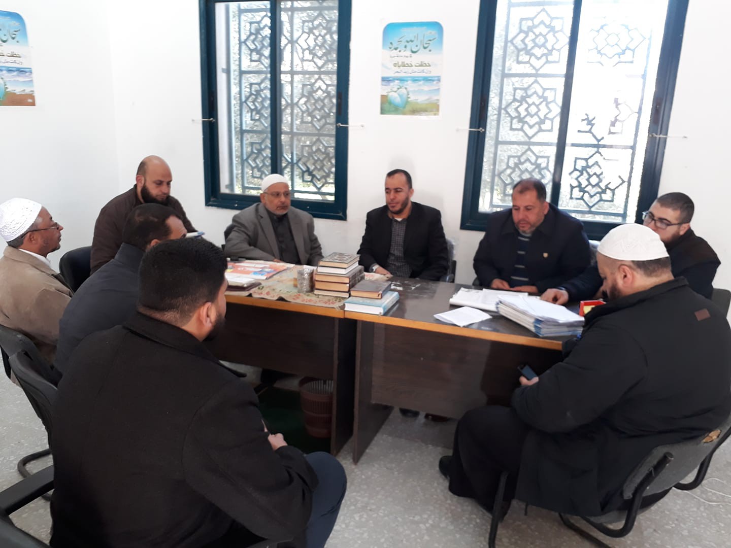 اجتمع مدير دائرة التحفيظ بوزارة الأوقاف أ. حمد النجار بموظفي قسمي التحفيظ بخان يونس ورفح برفقته رئيس قسم المراكز أ. توفيق حماد وذلك للاطلاع على سير العمل وبحث سبل الارتقاء في العمل ومتابعة سجلات المحفظين وخطة الحفظ والمراجعة والاختبارات التجميعية ومناقشة بعض القضايا المتعلقة بالتحفيظ. بحضور رؤساء أقسام التحفيظ والشعب والمرشدين.