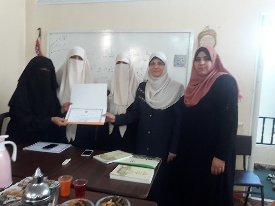 وفي ختام اللقاء تم توزيع الشهادات على الطالبات المشاركات , مؤكدات على استمرارهن في تعلم الدورات الأحكام وصولاً إلى السند المتصل برسول صلى الله عليه وسلم.
