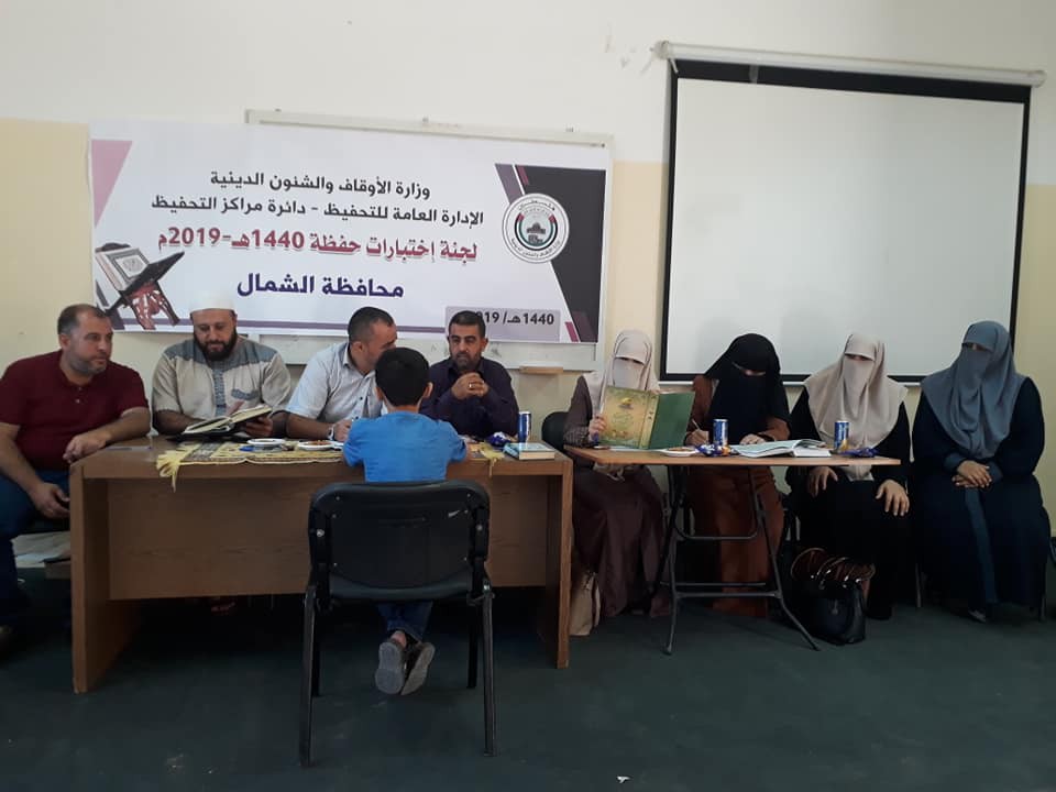 تفقد مدير عام التحفيظ مازن النجار ومدير عام العمل النسائي كفاح الرملي لجان الاختبارات الخاصة بحفظة القرآن الكريم للعام 2019م بمحافظتي الشمال والوسطى، يرافقهم مدير التحفيظ حمد النجار ومدير العمل النسائي مها الشوبكي ورئيس قسم مراكز التحفيظ توفيق حماد.