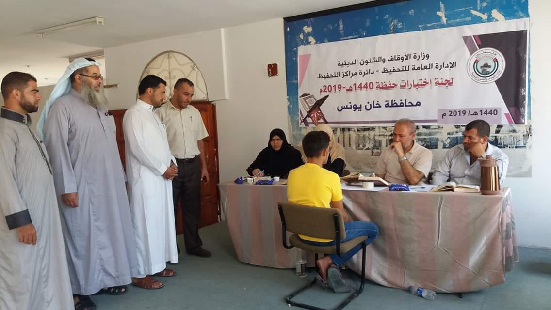 تفقد مدير التحفيظ أ. حمد النجار ومدير أوقاف خانيونس د. محمد الغلبان لجنة الاختبارات الخاصة بحفظة عام 2019م بمحافظة خان يونس رافقهم رئيس قسم التحفيظ عبد الباسط الأسطل.