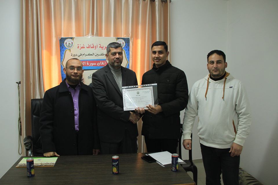 اختتمت مديرية أوقاف غزة دورة تدريبية بعنوان "إتقان سورة الفاتحة" استهدفت موظفي المديرية بواقع "14" ساعة تدريبية.