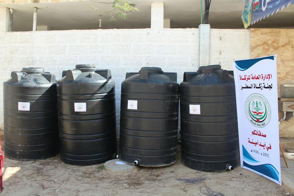 وزعت لجنة زكاة السطر التابعة للإدارة العامة للزكاة بالأوقاف "خزانات مياه "سعة ( 1500 ) لتر على الأسر المتعففة وذلك بتبرع كريم من أهل الخير .