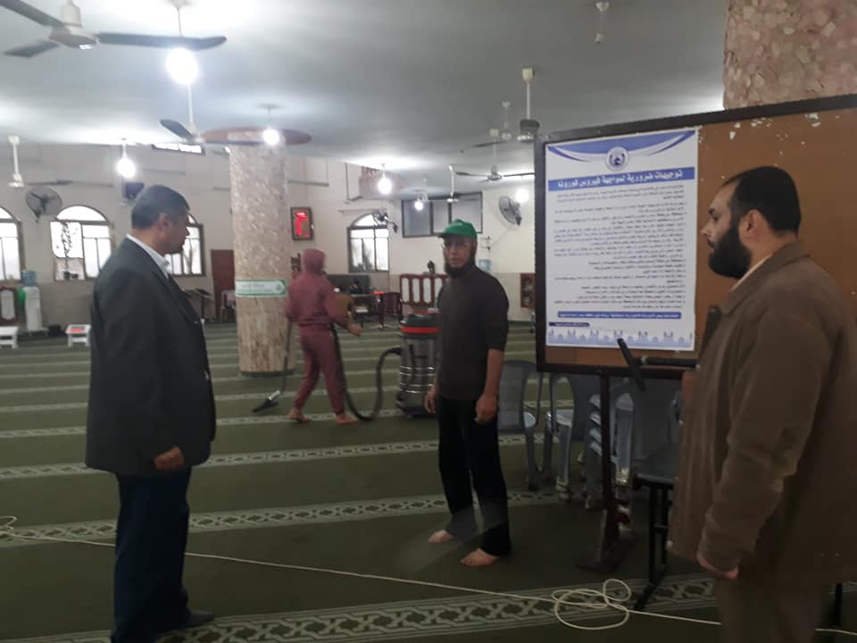تفقد مدير أوقاف غزة د. محمد سالم عدد من مساجد محافظة غزة، للاطلاع علي سير العمل فيها وذلك ضمن توجيهات وتعليمات وزارة الأوقاف فيما يتعلق بالوقاية من وباء كورونا، وبصحبته رئيس قسم تفتيش المساجد أ. محمد العجلة.