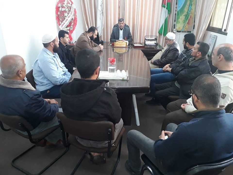 عقد مدير أوقاف محافظة غزة د. محمد سالم اجتماعا مع موظفي قسم تفتيش المساجد وذلك في إطار متابعته الالتزام بإرشادات وتوجيهات وزارة الأوقاف التي تأتي ضمن خطواتها الوقائية لمواجه وباء كورونا والتعليمات المتعلقة بمواقيت أذاني الفجر والجمعة الأولين.