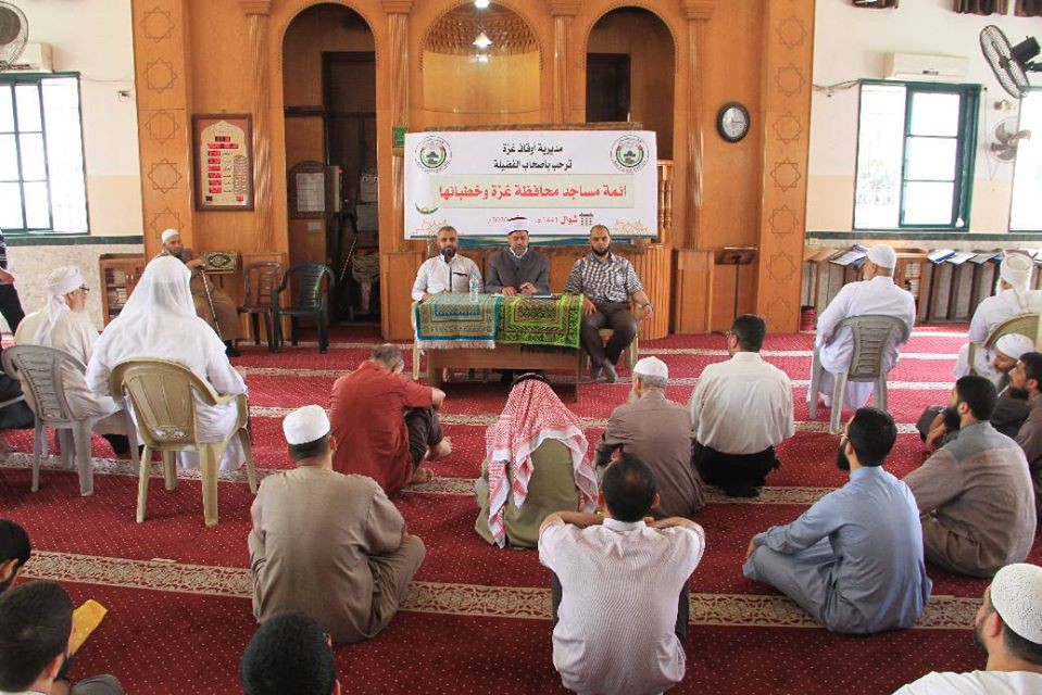 عقدت مديرية أوقاف غزة اجتماعاً مع أئمة مساجد محافظة غزة وخطبائها، وذلك لمناقشة توجيهات وزارة الأوقاف واطلاعهم علي الإجراءات الوقائية مع بقاء رخصة الصلاة في البيت.