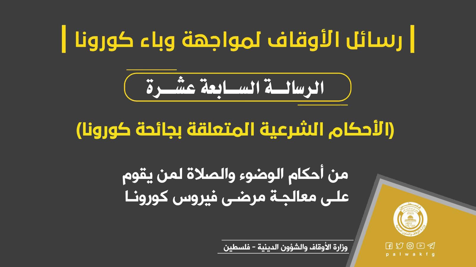 الرسالة السابعة عشرة: «من أحكام الوضوء والصلاة لمن يقوم على معالجة مرضى فيروس كورونا».