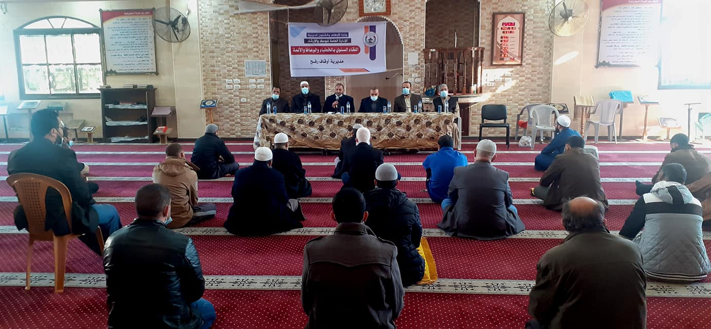 نظمت مديرية أوقاف رفح اللقاء السنوي للعاملين بمساجد المحافظة, وذلك لبحث الاستعداد لشهر رمضان المبارك والاجراءات الوقائية المتبعة في ظل جائحة كورونا, حضره وكيل وزارة الأوقاف د. عبد الهادي الأغا ومدير عام المديريات بالأوقاف أ. منذر الغماري ومدير الوعظ أ. محمد أبو عامر, ومدير أوقاف رفح م. طارق أبو يونس ومديرها السابق أ. عدنان حسان, ورئيس قسم الوعظ د. فايز الزاملي.