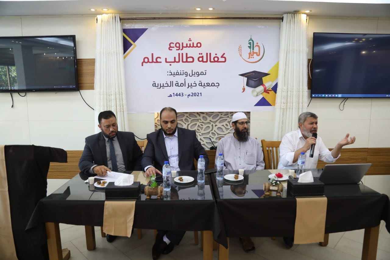 نفذت الادارة العامة للزكاة التابعة لوزارة الأوقاف والشؤون الدينية مشروع كفالة (34) طالب جامعي, بواقع 300$ لكل طالب, وذلك في إطار سعيها لتمكين الطلبة من الاستمرار في دراستهم ومواصلة تعليمهم الجامعي بدعم كريم من جمعية خير أمة الخيرية.