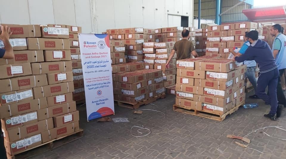 نفذت الإدارة العامة للزكاة التابعة لوزارة الأوقاف والشؤون الدينية المرحلة الثانية من مشروع توزيع لحوم الأضاحي المجمدة للعام 2021م, الذي استهدف (11606) أسرة متعففة من خلال لجانها المنتشرة على مستوى محافظات قطاع غزة, بواقع (2) كيلو لكل أسرة, بتمويل كريم من مؤسسة "أمان فلسطين ماليزيا".
