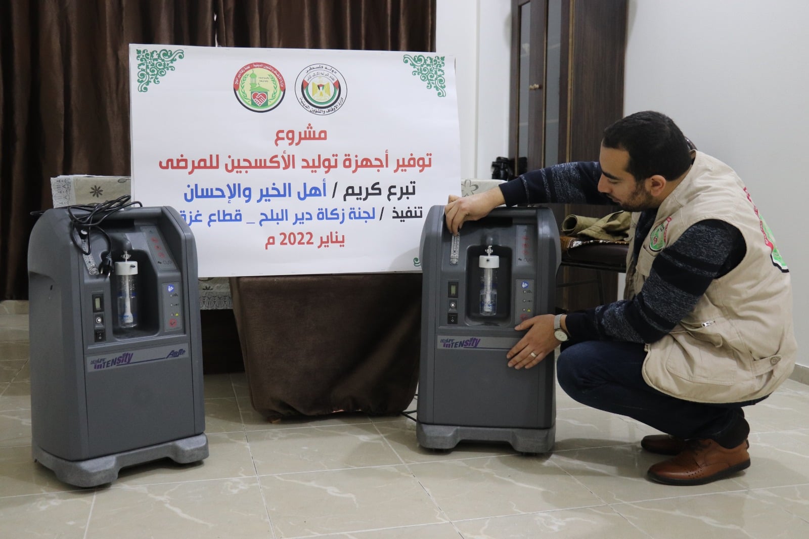 وفرت لجنة زكاة دير البلح التابعة للإدارة العامة للزكاة بوزارة الأوقاف والشئون الدينية (3) أجهزة تنفس صناعي لحالات مرضية تعاني من فشل رئوي وتحتاج باستمرار للتنفس الصناعي، بتكلفة إجمالية وصلت لـ 5000 دولار, بتمويل كريم من أهل الخير