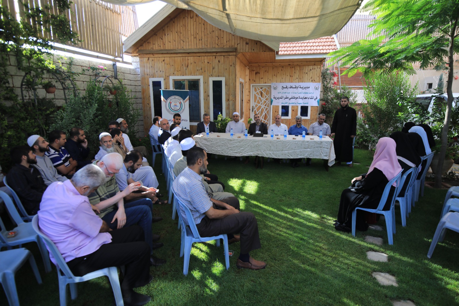 نظمت وزارة الأوقاف والشؤون الدينية، لقاء معايدة لموظفيها بمقر الوزارة ومديرياتها الخمس والمرافق التابعة لها وذلك بعد انتهاء إجازة عيد الأضحى المبارك وعودتهم إلى العمل مجددًا, بمشاركة وكيل الوزارة د. عبد الهادي الاغا، ومدراء عامون ومدراء الأوقاف.