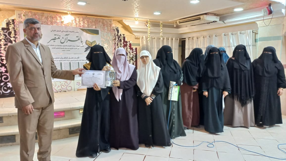 كرمت دائرة القرآن الكريم/إناث بوزارة الأوقاف والشؤون الدينية (100) طالبة شاركن في اجتياز برامج التحفيظ وأحكام التلاوة والتجويد، وعدد من الحافظات لأجزاء من القرآن الكريم، خلال حفل قرآني بعنوان "بالقرآن ننتصر"، حضره مدير عام الإدارة العامة للقرآن الكريم د. محمد سالم، ومدير دائرة القرآن الكريم /إناث أ. مها الشوبكي ولفيف من المشرفات والمحفظات.