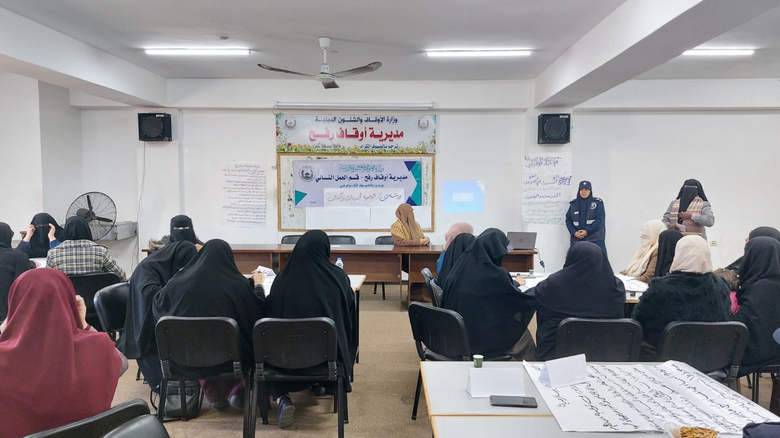 عقد قسم الدعوة والإرشاد-إناث بمديرية أوقاف رفح ورشة عمل بعنوان (الدعوة الميدانية تحديات وآمال)، بمشاركة دار القرآن الكريم، ودار الكتاب والسنة، وجمعية ابن باز، والأطر النسوية في حركة الجهاد، ورابطة علماء فلسطين، والكتلة الإسلامية، والشرطة النسائية، وواعظات الأوقاف.