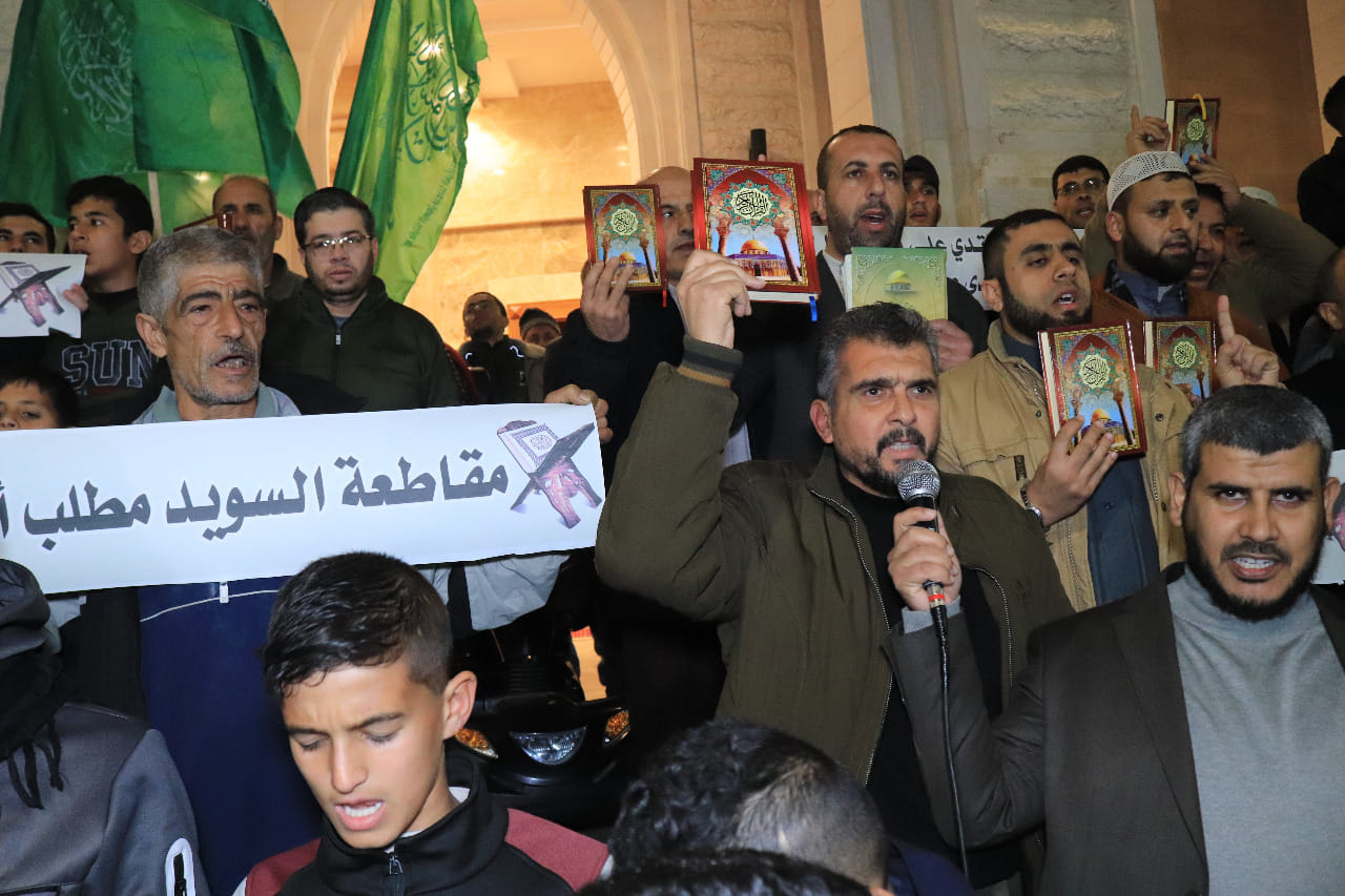 وعبّر المشاركون عن غضبهم ورفضهم لجريمة الحرق في السويد، رافعين نسخ من المصحف الشريف، في إشارة إلى اعتزازهم وانتمائهم له.