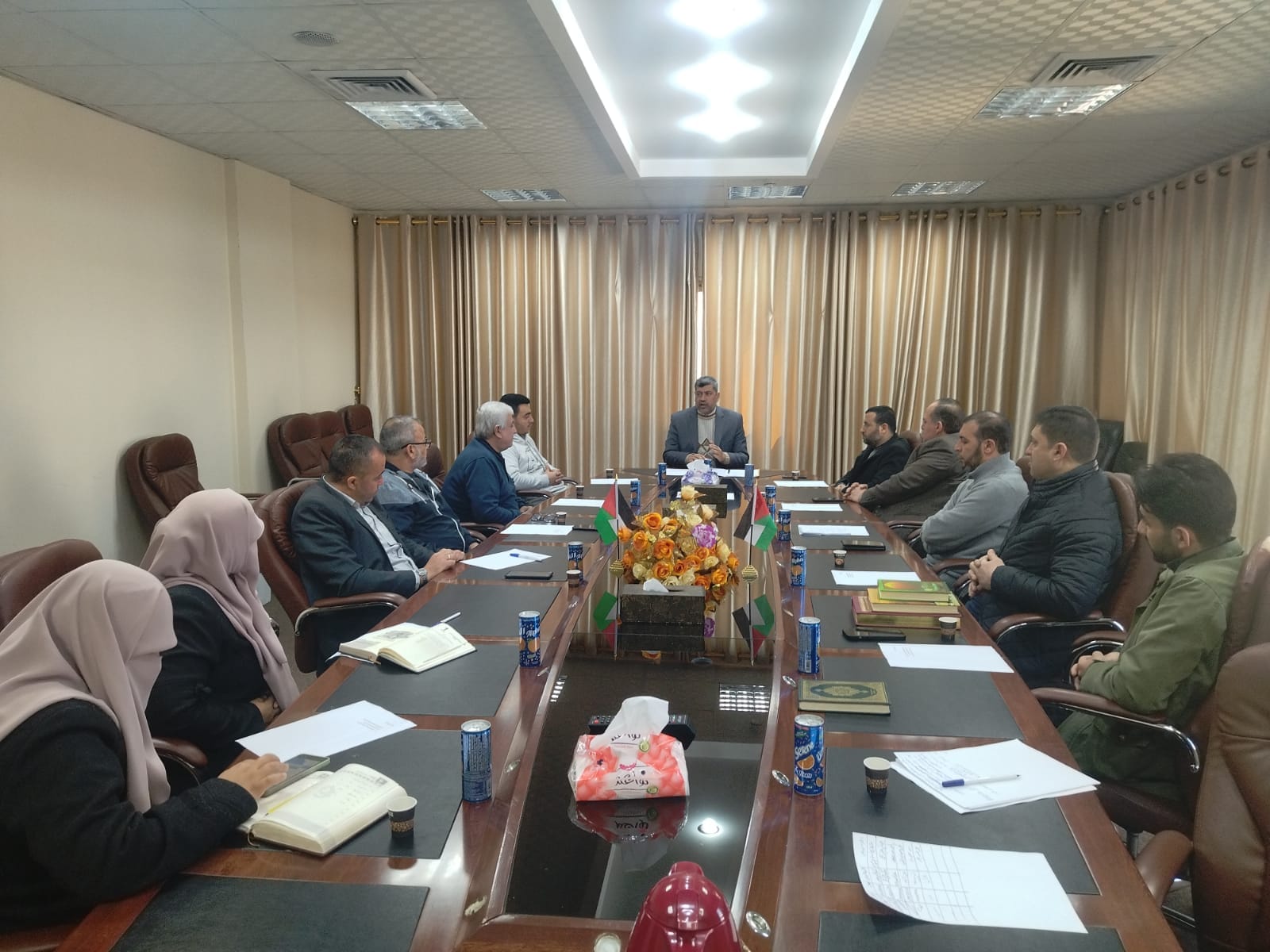 بحث مدير عام الإدارة العامة للقرآن الكريم بوزارة الأوقاف د. محمد سالم سبل التعاون المشترك مع أصحاب المكتبات ودور النشر الفلسطينية، بحضور مدراء الدوائر في الإدارة العامة للقرآن الكريم، وذلك في إطار تعظيم المصحف الشريف.