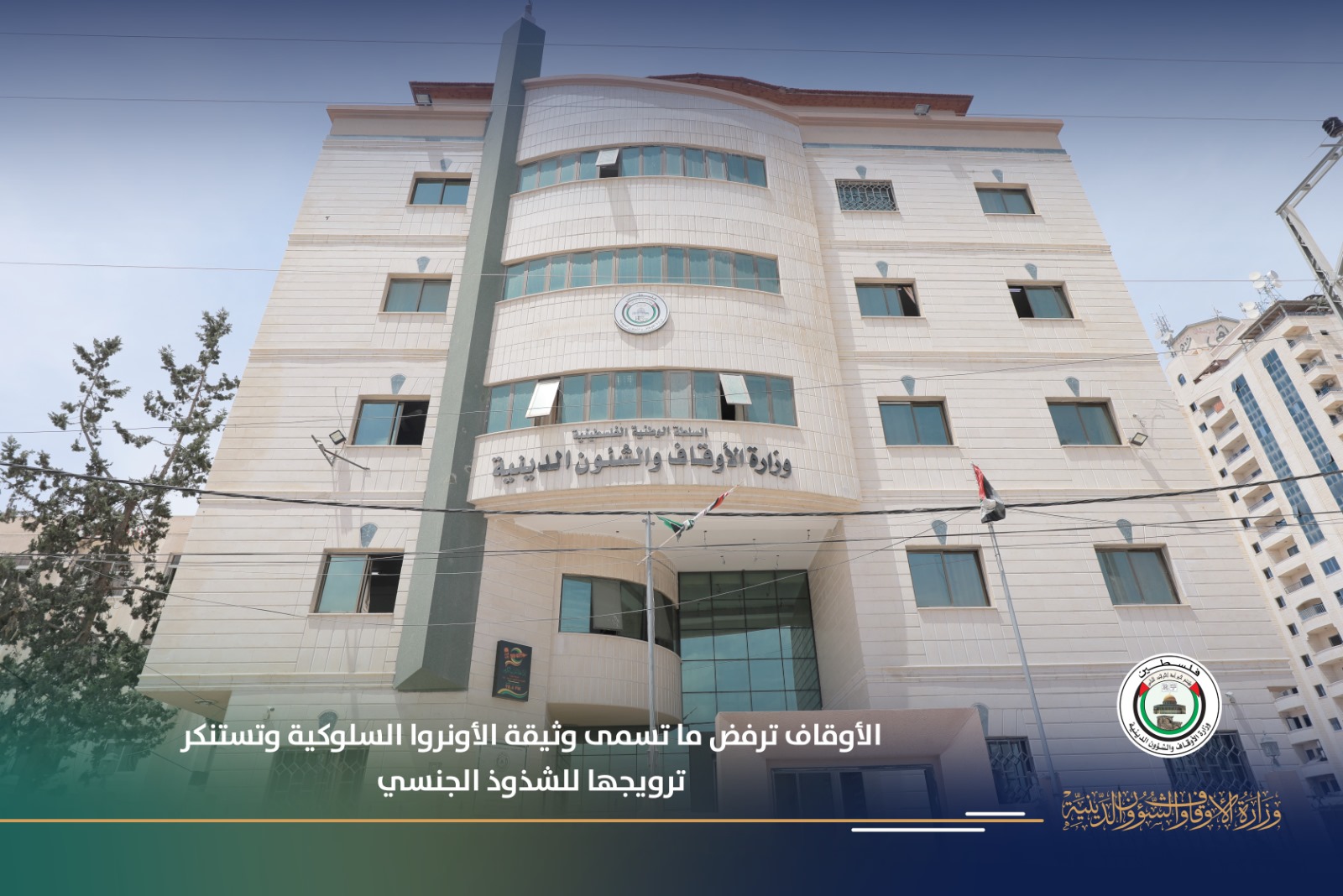 عبرت وزارة الأوقاف والشؤون الدينية عن رفضها التام لما جاءت به ما تسمى "وثيقة قواعد السلوك" الصادرة عن مكتب الأخلاقيات التابع لوكالة غوث وتشغيل اللاجئين الفلسطينيين (أونروا) والتي تدعو إلى الشذوذ الجنسي و المثلية، بحجة المساواة بين الرجل و المرأة، والحرية في ممارسة الميول الجنسية في المجتمع الفلسطيني.
