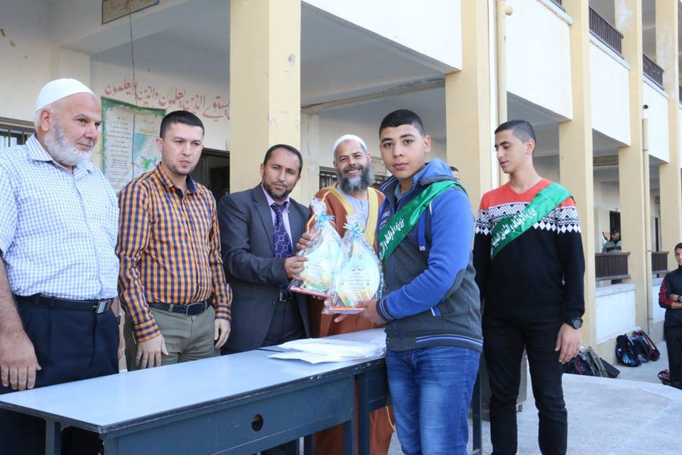 كرم قسم التحفيظ بمديرية أوقاف غزة بالتعاون مع مسجد مرج الزهور طالبين من حفظة كتاب الله، في مدرسة عدنان العلمي الثانوية، وذلك في إطار تشجيع الشباب وتطوير قدراتهم الفكرية. وأشاد رئيس قسم التحفيظ الأستاذ جمال ضبان بجهود ال