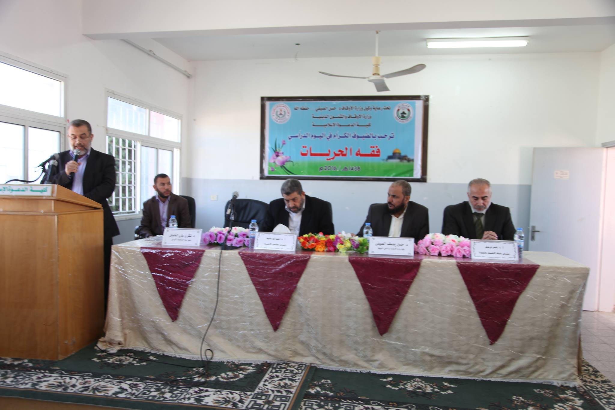 نظمت كلية الدعوة الإسلامية فرع الوسطى - التابعة لوزارة الأوقاف والشئون الدينية يومًا دراسيًا بعنوان "فقه الحريات" بحضور مدير عام التعليم الشرعي د. شكري الطويل ومدير عام الإدارة العامة للوعظ والإرشاد د. يوسف فرحات ورئيس مجلس أمناء الكلية د. أحمد أبو ح