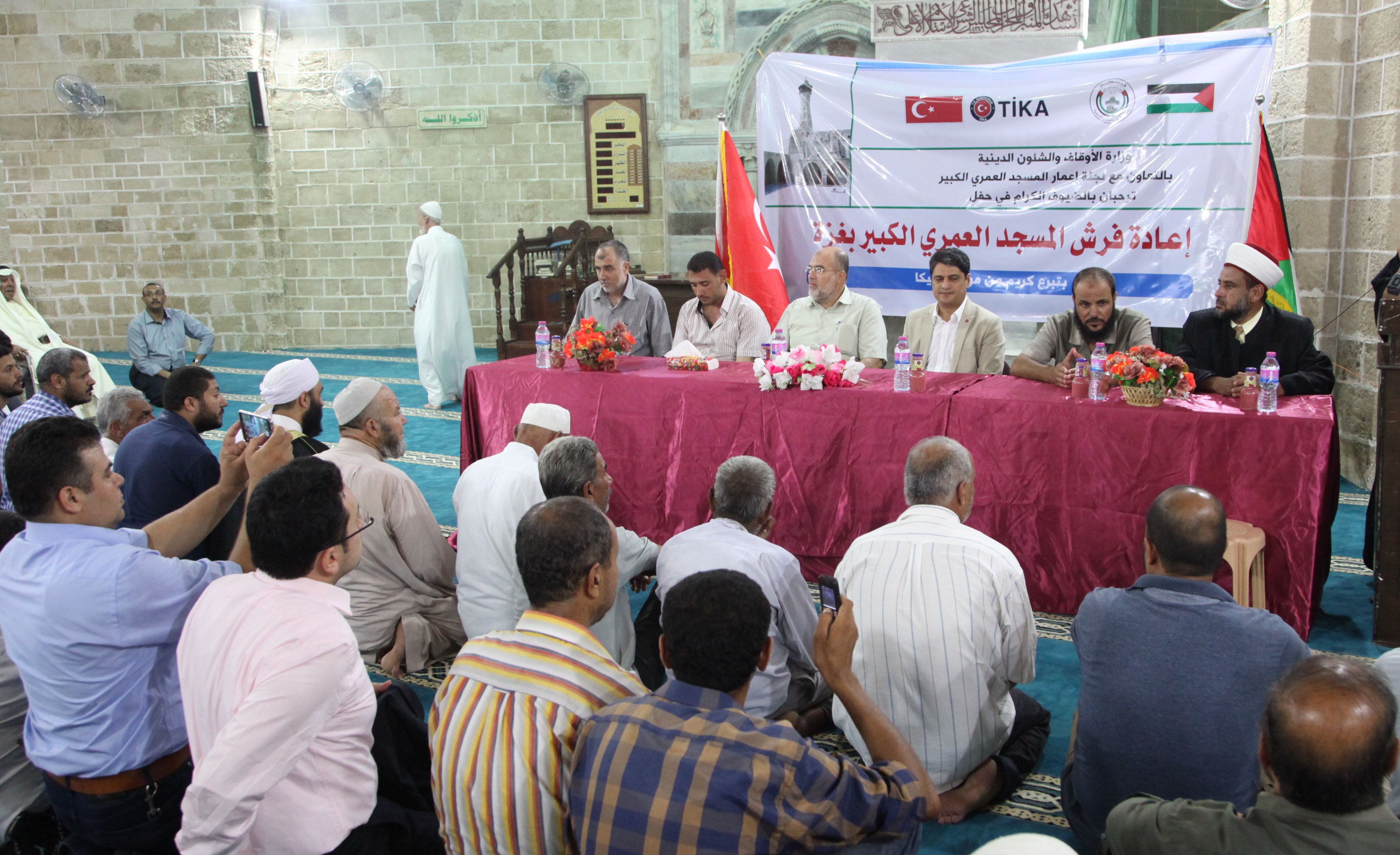 الأوقاف وبدعم من تيكا تحتفل بإعادة فرش المسجد العمري الكبير بغزة