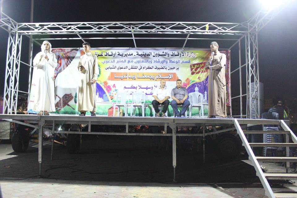 نظمت دائرة إعداد الدعاة التابعة للإدارة العامة للوعظ والإرشاد بوزارة الأوقاف والشئون الدينية الملتقى الدعوي "بالإسلام يجمعنا وبه نحيا" بمنطقة بيت حانون (السوق) وآخر بكورنيش بحر غزة, بحضور ومشاركة لفيف من المواطنين. وتخلل الملتقي العديد من الف