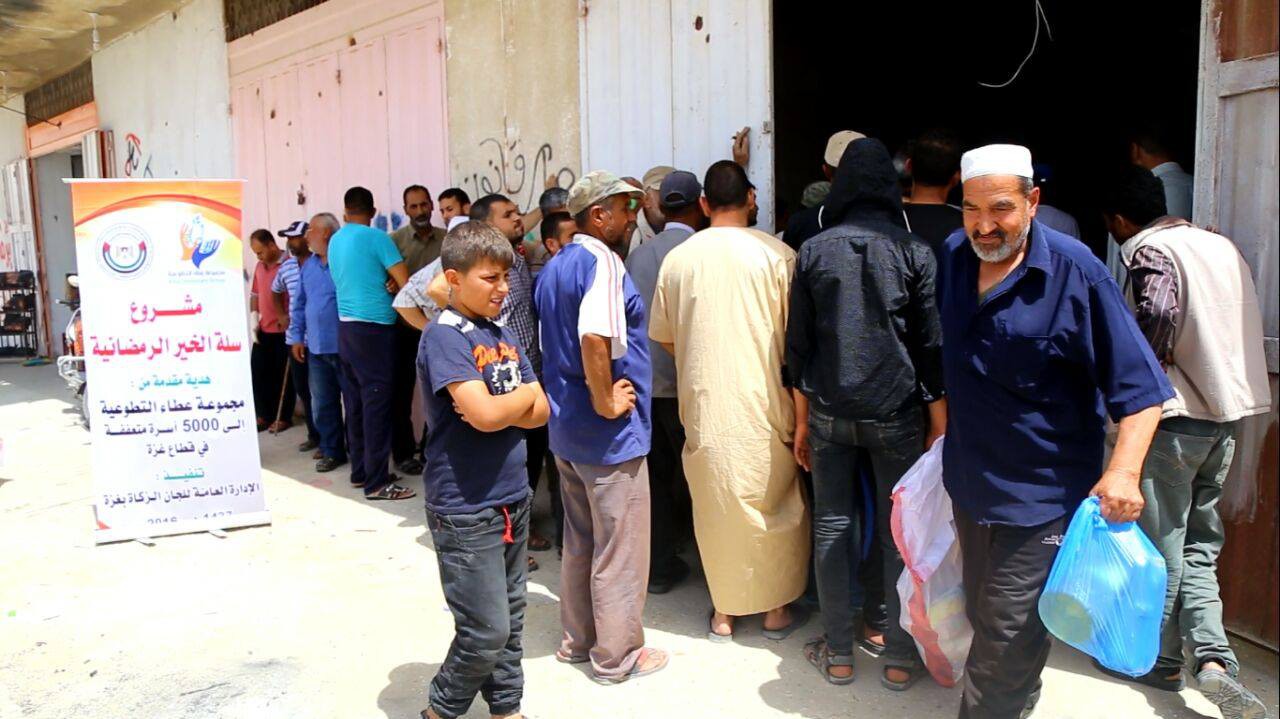 شرعت الإدارة العامة للزكاة التابعة لوزارة الأوقاف والشئون الدينية ومن خلال لجانها المنتشرة على مستوى قطاع غزة بتوزيع (6000) طرد غذائي على الأسر الفقيرة والمحتاجة, بتكلفة إجمالية تُقدر بـ (300.000) دولار, وذلك بتمويل كريم من مجموعة عطاء التطوعية.
