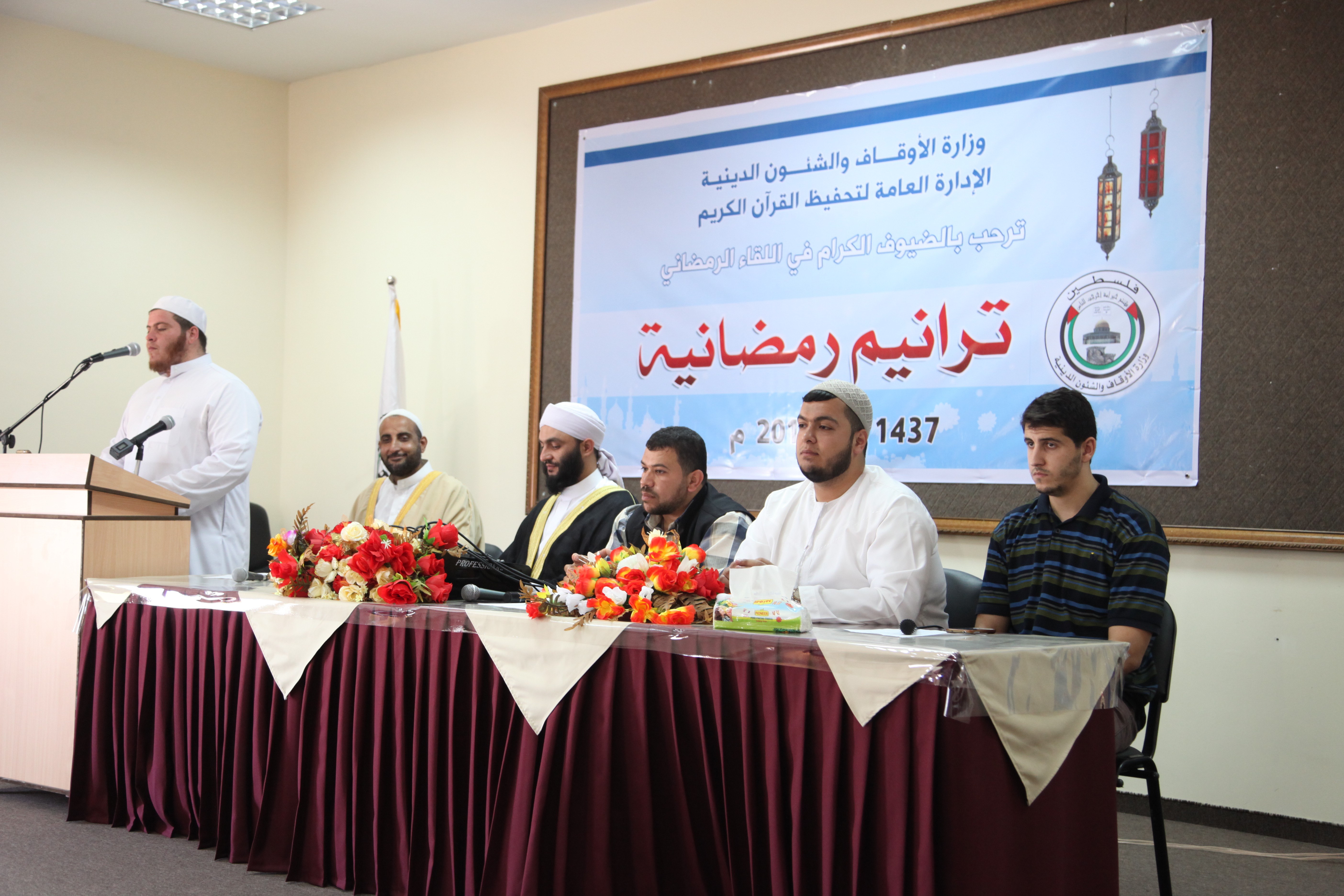 نظمت وزارة الأوقاف والشئون الدينية لقاءاً إيمانياً رمضانياً لموظفيها بعنوان "ترانيم رمضانية" بمشاركة وحضور وكيل وزارة الأوقاف د. حسن الصيفي والمدراء العامين ومدراء الدوائر والمديريات وموظفي الوزارة.