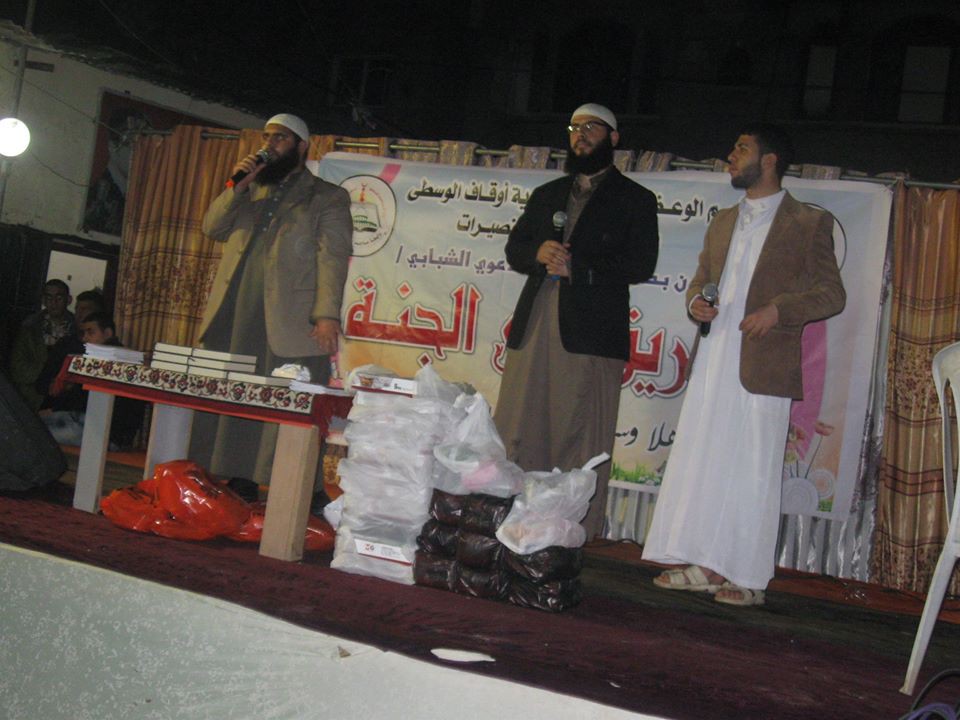 نظمت مديرية أوقاف المحافظة الوسطى ملتقيين دعويين في منطقة النصيرات ودير البلح بعنوان "الطريق إلى الجنة" ، بالتعاون مع رابطة مساجد الوسطى، وذلك ضمن حملة الملتقيات الدعوية التي أطلقتها وزارة الأوقاف والشئون الدينية في كافة أرجاء قطاع غزة.