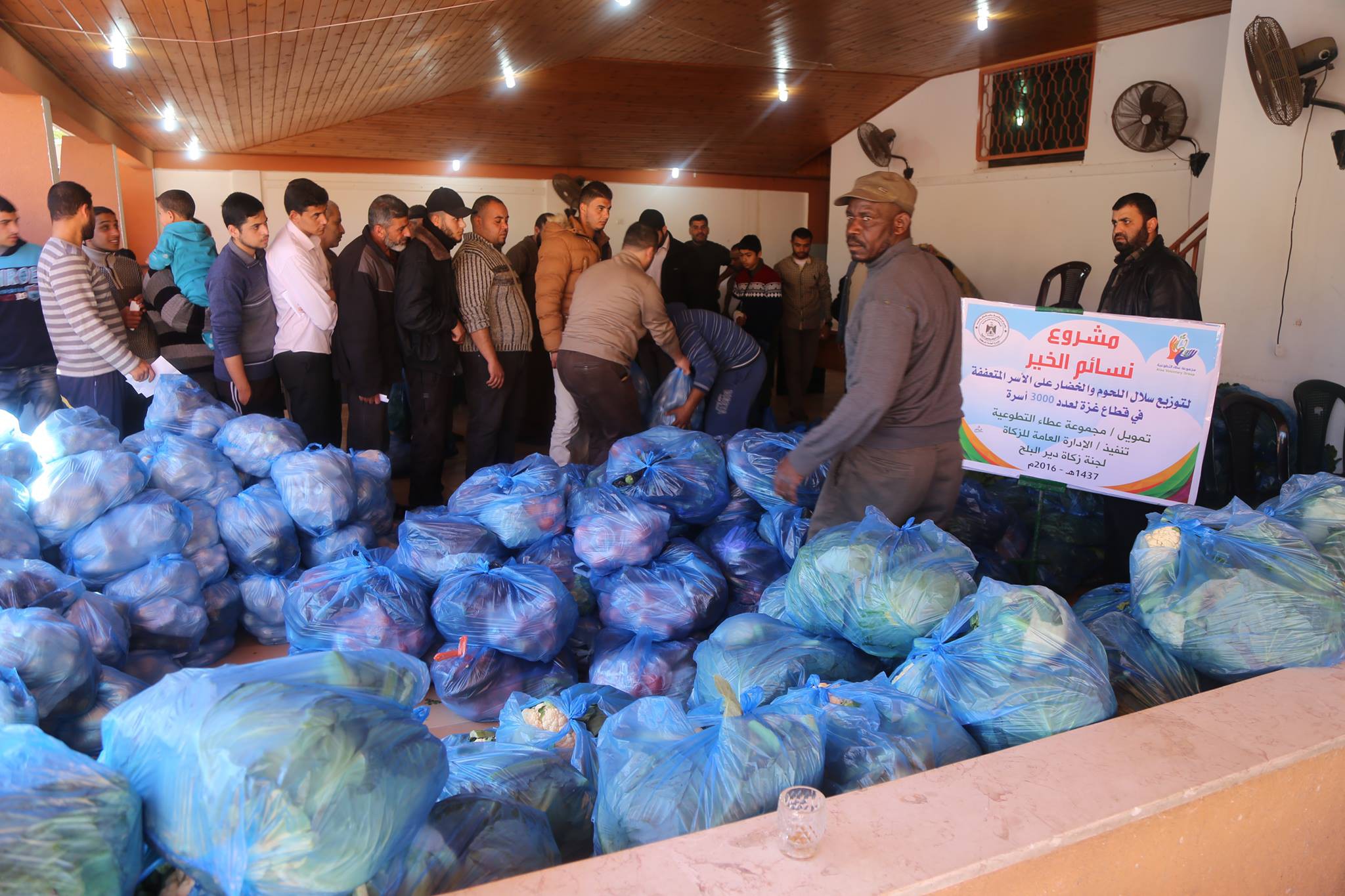 شرعت الإدارة العامة للزكاة التابعة لوزارة الأوقاف والشئون الدينية بتنفيذ مشروع نسائم الخير والذي يستهدف (3000) أسرة فقيرة من خلال توزيع سلة خضار تحتوي على (17) صنف بالإضافة إلى كيلو لحم عجل طازج بتكلفة إجمالية وصلت إلى (77519 ) دولار, وذلك بتبرع ك