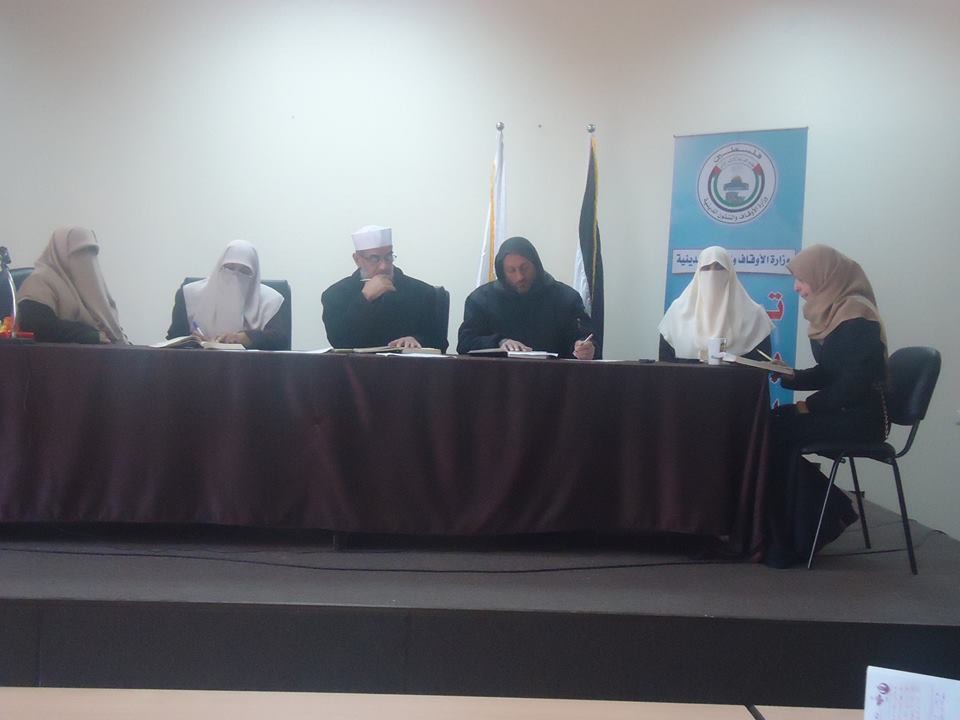 نظم قسم دورات أحكام التلاوة والتجويد التابع للإدارة العامة للعمل النسائي اختبار عملي للجمع بالقراءات العشر، بحضور وإشراف المدير العام .أ.كفاح الرملي ولجنة التحكيم مكونة من رئيس دار القرآن والسنة الدكتور د .عبد الرحمن الجمل ومديرة دائرة مشيخة المقارئ وم