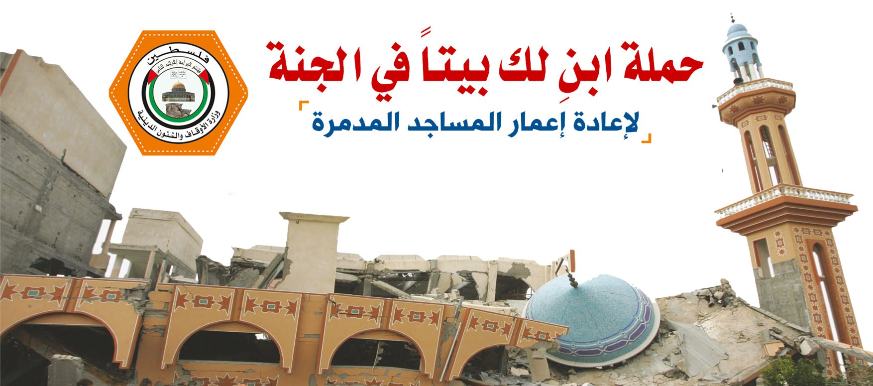 أطلقت وزارة الأوقاف والشئون الدينية حملة "ابن لك بيتاً في الجنة" لجمع التبرعات من أجل إعادة إعمار المساجد التي مازالت مدمرة جراء الحروب المتعاقبة التي شنتها قوات الاحتلال الإسرائيلي على قطاع غزة. وأوضحت وزارة الأوقاف أن عدد المساجد التي دمرها