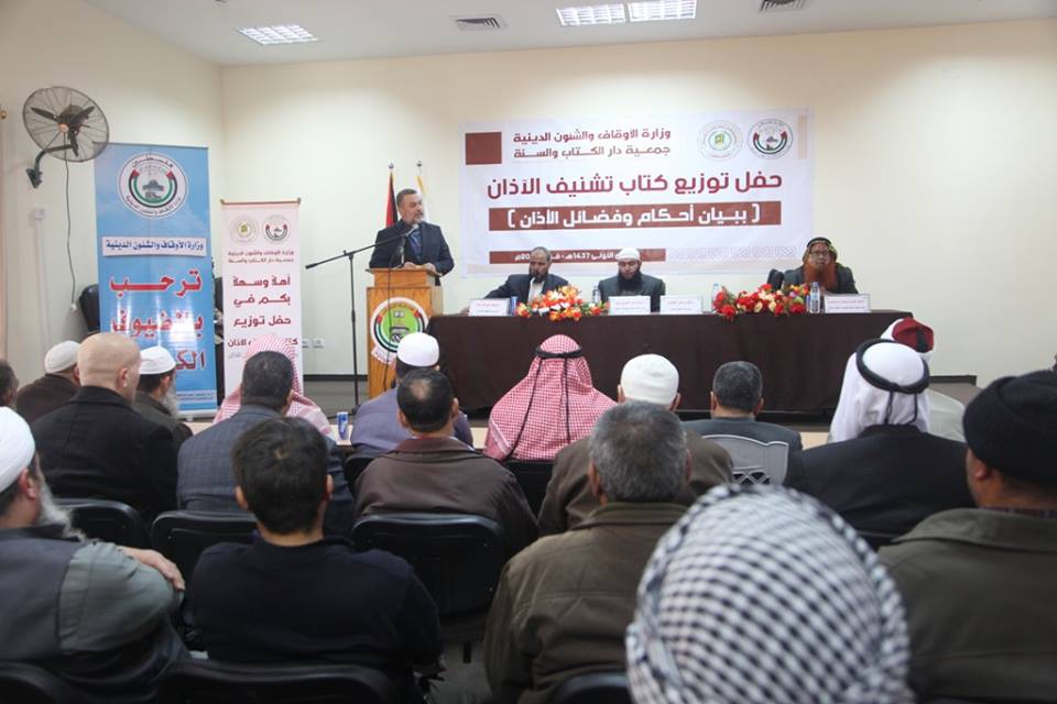 نظمت وزارة الأوقاف والشئون الدينية بالتعاون مع جمعية دار الكتاب والسنة حفل توزيع كتاب "تشنيف الآذان ، بيان أحكامه وفضائل الآذان بحضور مدير عام التعليم الشرعي الدكتور يوسف فرحات و مدير عام الوعظ والإرشاد الدكتور شكري الطويل وأمين سر جمعية دار ا