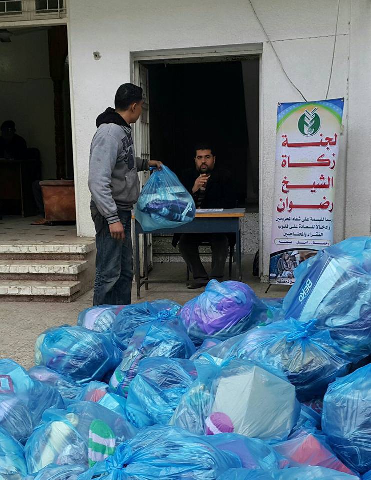 وزعت لجنة زكاة الشيخ رضوان التابعة للإدارة العامة للزكاة كسوة ملابس على ما يزيد عن 400 أسرة فقيرة, بواقع (40$ ) لكل أسرة, وبتكلفة إجمالية وصلت إلى (16.000) دولار. وأوضح رئيس اللجنة الشيخ حسن الخطيب أن اللجنة بكامل طواقمها تستشعر مدى حاجة الأسر
