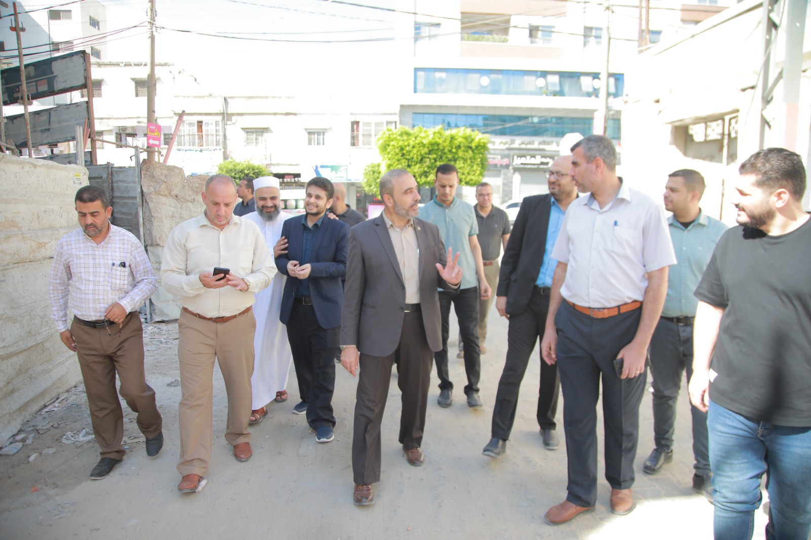 تفقد وكيل وزارة الأوقاف والشؤون الدينية د. عبد الهادي الأغا أعمال إنشاء مشروعَي وقفية الساحة وبنك الوقف الفلسطيني، رافقه في جولته مدراء عامون بالوزارة، وممثل مسلم كير أ. أحمد النجار.