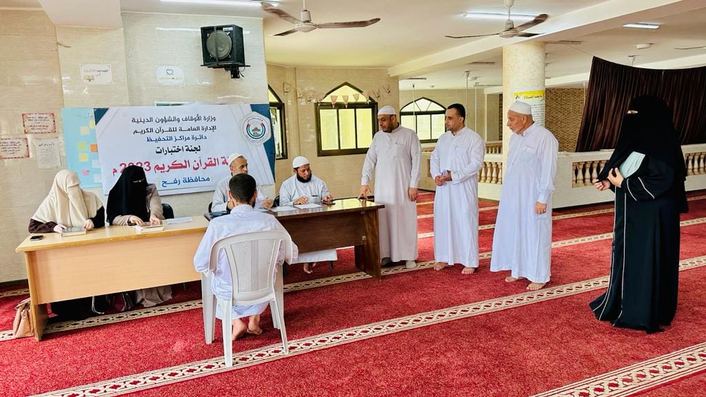 شرعت الإدارة العامة للقرآن الكريم بوزارة الأوقاف والشؤون الدينية بعقد اختبارات حفظة كتاب الله لعام 2023م على مستوى قطاع غزة، بمشاركة (822) حافظًا وحافظة من مختلف المحافظات.