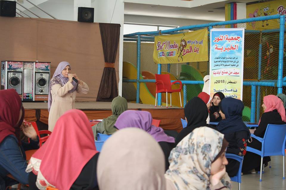 نظم قسم التدريب في الإدارة العامة للعمل النسائي بالتعاون مع جمعية النور الخيرية لبنات وأخوات الشهداء في مخيم " محاضرة بعنوان: مجد من صنع أيادينا" حول خطوات النجاح من إعداد المدربة أ.نادرة أبو حامدة.