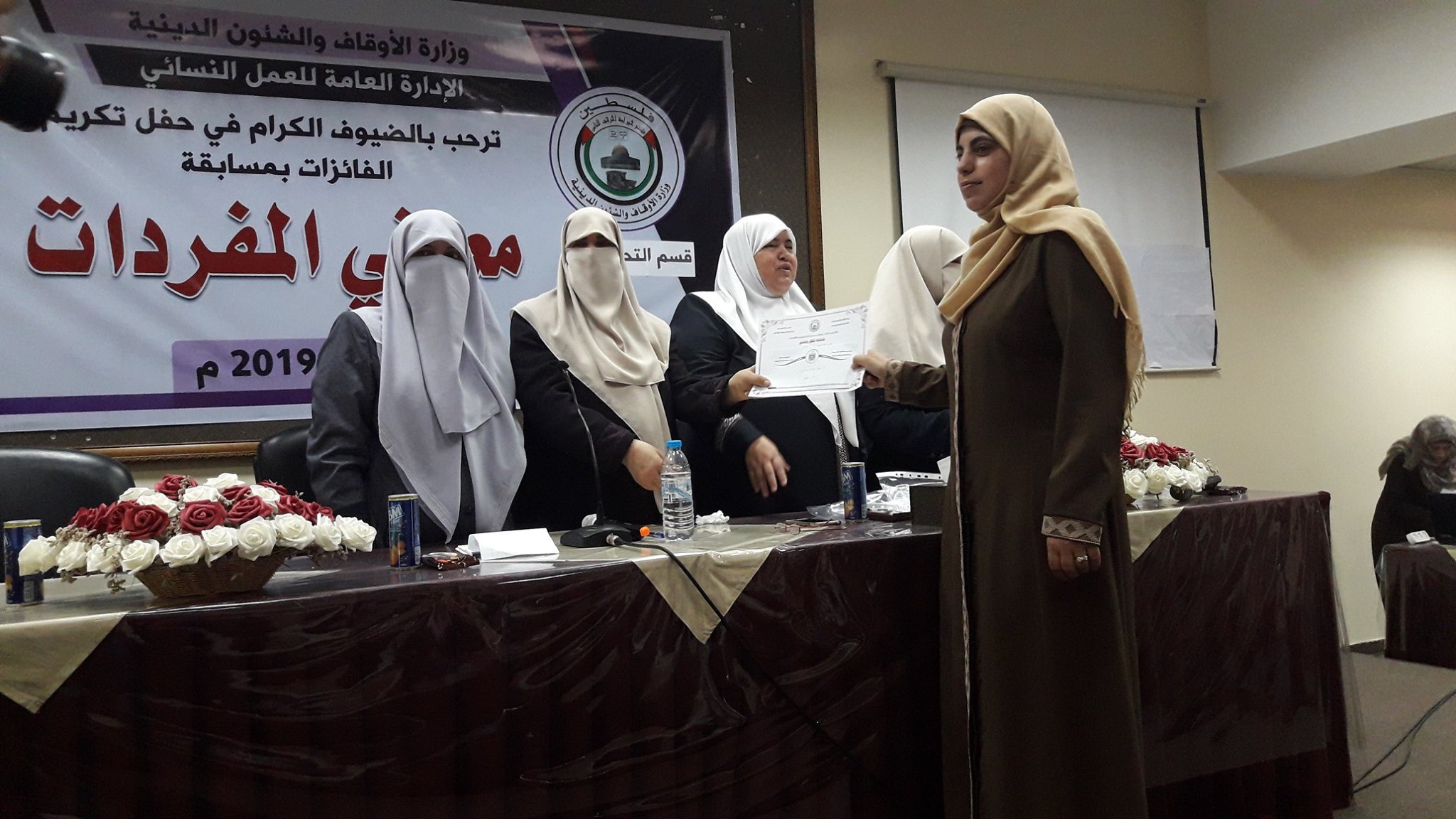 نظم قسم التحفيظ في الإدارة العامة للعمل النسائي بوزارة الأوقاف حفل خاص لتكريم طالبات ديوان الحافظات الفائزات في مسابقة معاني المفردات لأجزاء من القرآن الكريم، بحضور مدير عام العمل النسائي كفاح الرملي، ومدير العمل النسائي مها الشوبكي، ومدير دائرة مركز التوعية الثقافية النسائية إيمان عرفات، ورئيس قسم التلاوة والتجويد تغريد مريش، وعدد من الإداريات والمشرفات والمحفظات وطالبات الديوان.