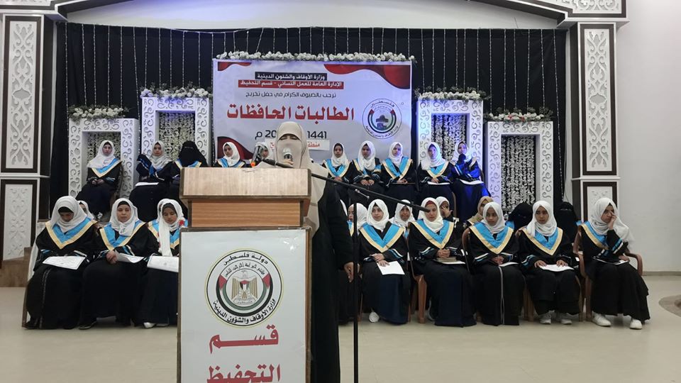 نظمت دائرة التحفيظ التابعة للإدارة العامة للعمل النسائي بالأوقاف حفل لتكريم الطالبات الحافظات للقرآن الكريم, بمحافظة رفح, بحضور ومشاركة مدير عام التحفيظ أ. مازن النجار ومدير أوقاف رفح .أ عدنان حسان ومدير العمل النسائي أ. مها الشوبكي وعدد من الإداريين والإداريات والمشرفات والمحفظات على مستوى المحفظات.