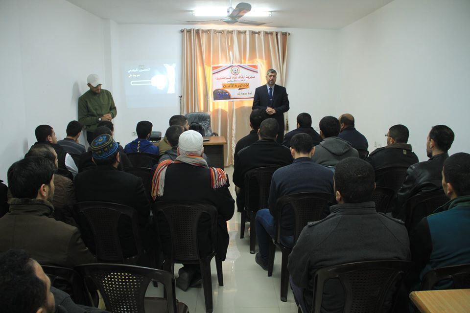 عقد قسم التحفيظ بمديرية أوقاف غزة محاضرة أمنية استهدفت محفظي قسم التحفيظ ، بحضور ومشاركة مدير أوقاف غزة د. محمد سالم, وذلك لإيصال الوعي الأمني عن طريق المحفظين لعامة الناس.