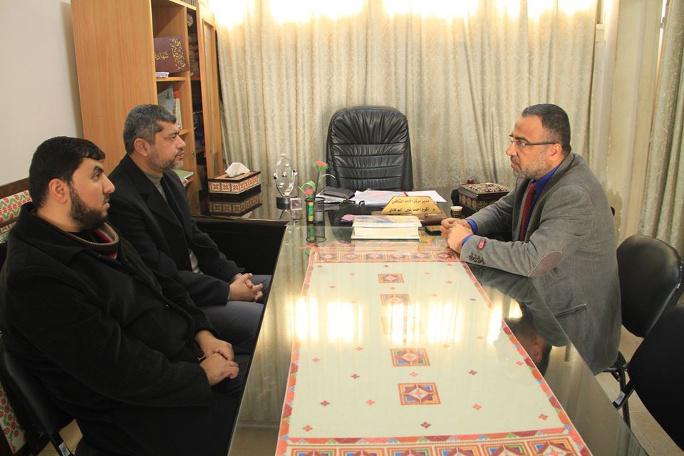 بحث مدير أوقاف غزة د. عبد الله سالم سبل التعاون المشترك مع أ. أكرم غبن مدير المعهد المهني "مركز الإمام الشافعي" وآليات تنفيذ برامج ودروس دعوية ووعظية لطلاب المعهد, بمشاركة أ. محمد قنيطة رئيس شعبة الوعظ والإرشاد بالمديرية.