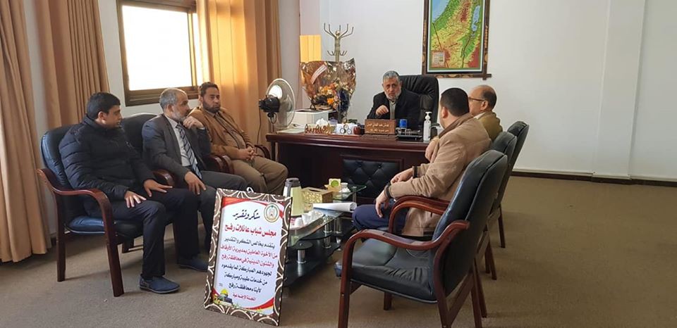 بحث مدير أوقاف رفح أ. عدنان حسان مع مجلس شباب عائلات رفح, سبل التعاون المشترك وآليات مواجهة فايروس كورونا والالتزام بالتوجيهات والارشادات الصادرة عن وزارة الأوقاف للحد من هذا الوباء والوقاية منه.
