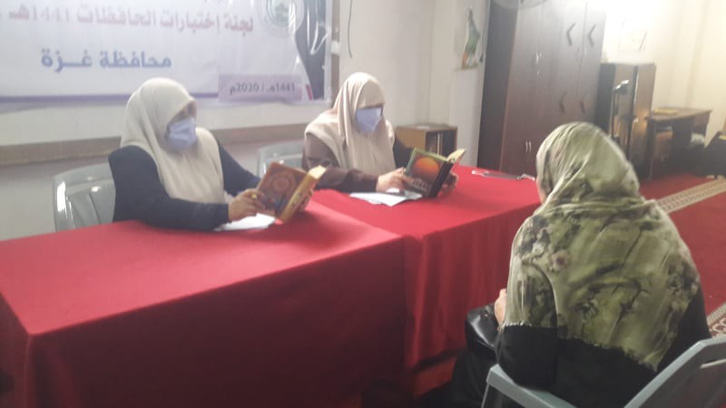 نظمت دائرة التحفيظ بالإدارة العامة للعمل النسائي بالأوقاف لجان اختبارات لأجزاء مجتمعة في القرآن الكريم استهدفت طالبات المراكز اللاتي أتممن حفظهن عبر التعليم الالكتروني عن بُعد على مستوى القطاع, وفقًا للإجراءات التي اتخذتها الأوقاف للوقاية من فايروس كورونا.