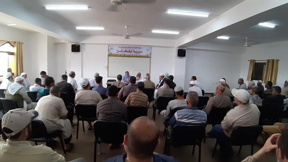 عقدت مديرية أوقاف رفح اجتماعا بأئمة وخطباء المساجد في المحافظة وذلك في إطار وضعهم بالقرارات الإدارية والفنية المتعلقة بجائحة كورونا وبحث آخر المستجدات في العمل المسجدي بوزارة الأوقاف.