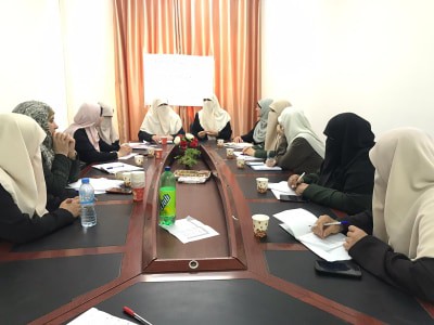 ومن جهتها استعرضت مريش خطة عمل البرامج البعدية في القسم , ومناقشة الإيجابيات والسلبيات لواقع التدريس الالكتروني من أجل الوصول إلى نتائج أفضل , واستعرضت الانجازات التفصيلية التي تم تنفيذها للطالبات والنساء المشاركات على مستوى القطاع.